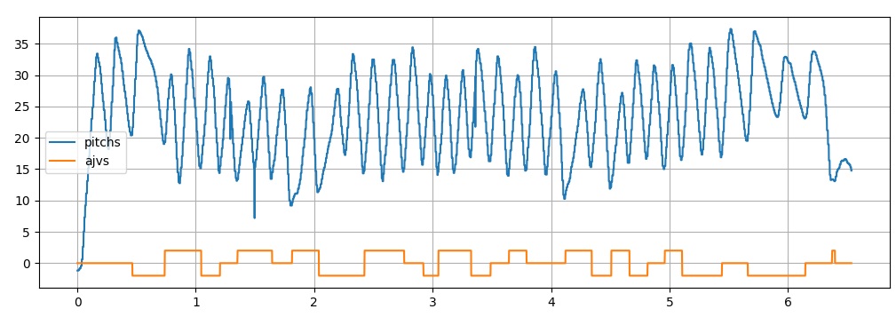 ajv, b = detector.append(pitch) # 走行方向の判定、調整値取得